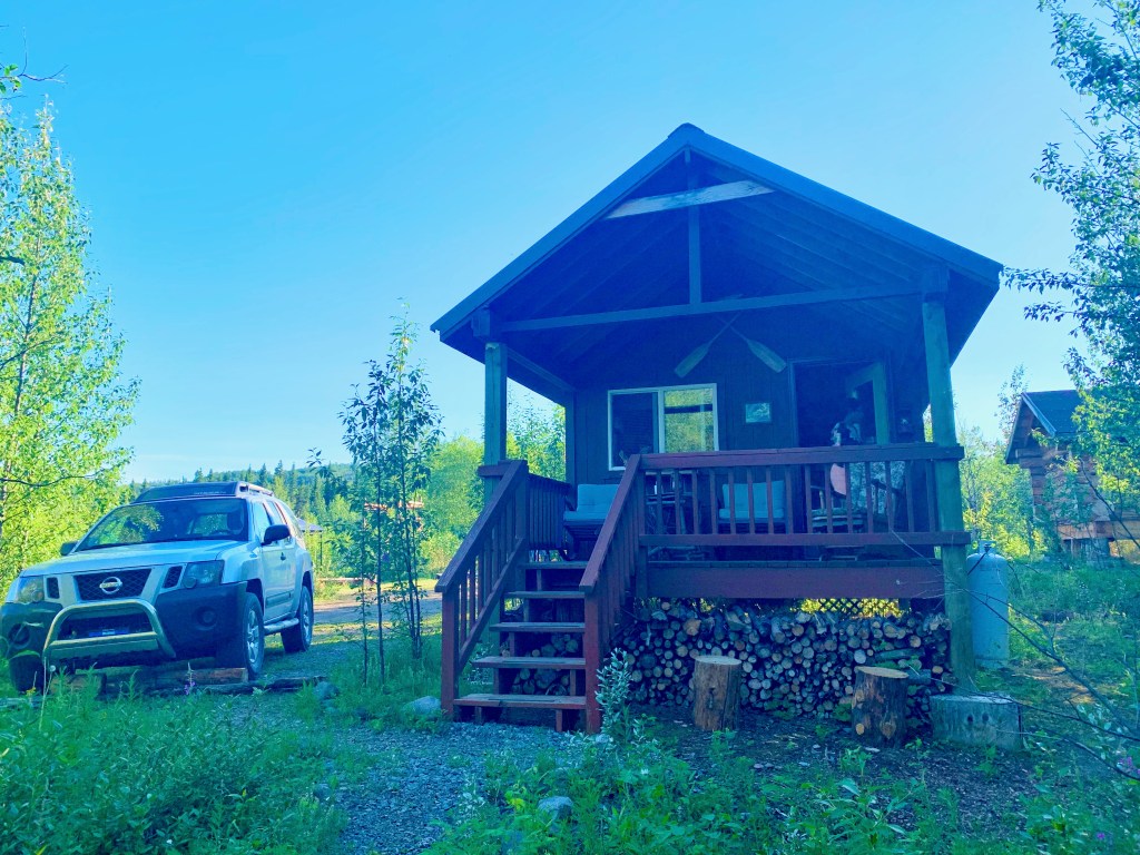 Later in the day we drove back to the 15th mile of the park for hike in Hike the Savage River Loop Trail. This easy, 2-mile trail makes a loop around the Savage River. The trail is a loop, so you’ll return to the parking area when you’re done. While you won’t see Denali on this hike, you will get amazing views of the river and surrounding canyon. This was the last adventure of the day and we headed towards Trapper Creek for our night stay in a log cabin.