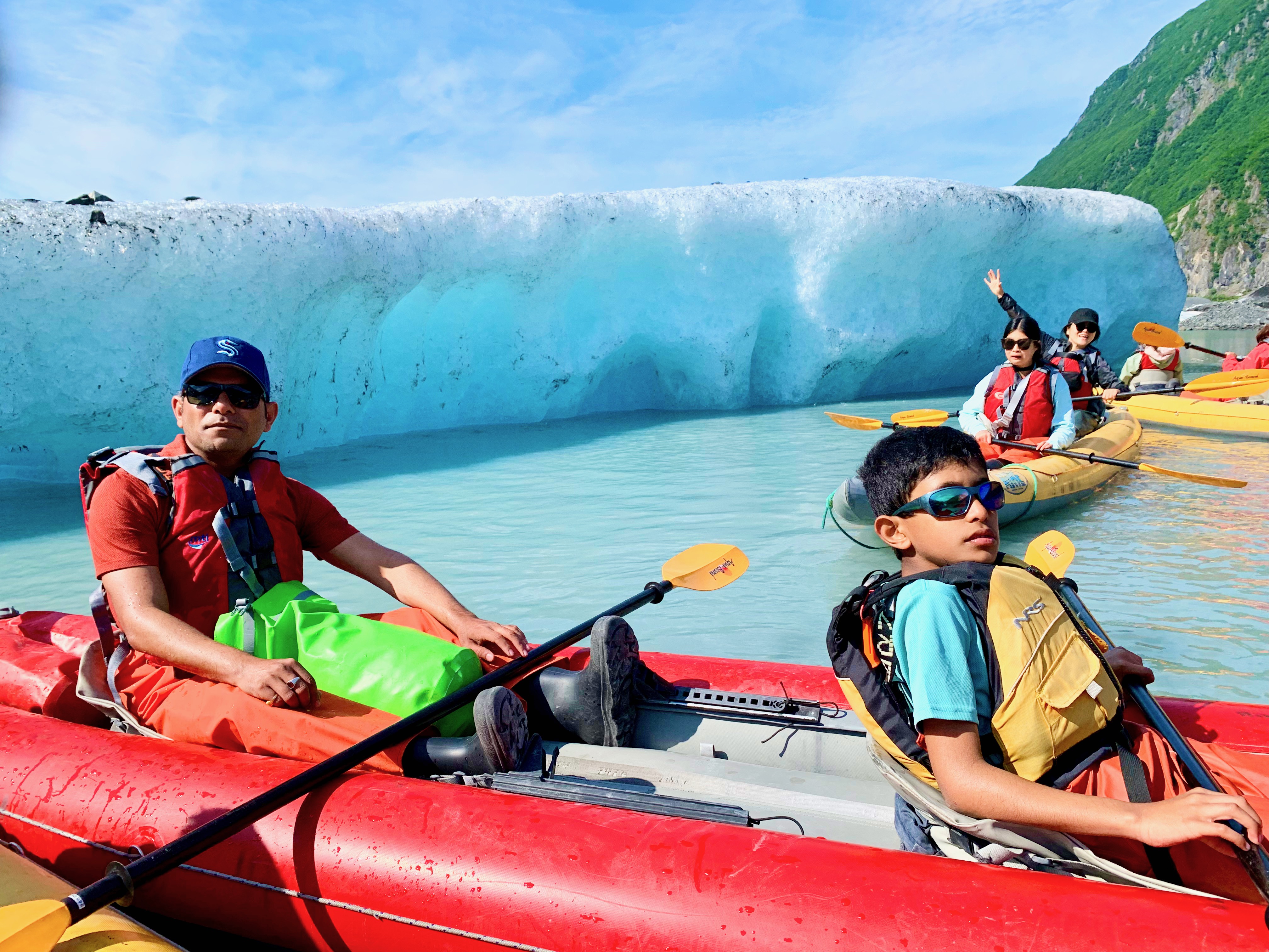 We kept our day quite light as we have to make 6 hours drive on our way back to Anchorage. In morning, we went for kayaking in the glacial lake which we had booked with Anadyra Adventures. They provide the suits to keep us safe from the cold glacier water. It was an amazing experience with breathtaking views of the glacier which are melting. The mountain at a distance, the ice chunks of glaciers and the lake provided a nice vista to enjoy. We got to kayak all the way inside glacier caves. We made brief stop at an island for lunch and continued with our kayaking post that.