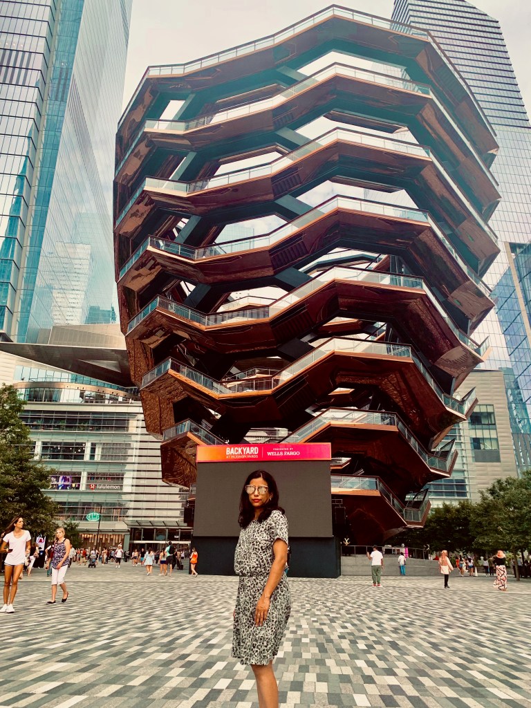 We started the morning today visiting One World Trade Center. This skyscraper stands next to the original World Trade Center buildings that were destroyed in the 9/11 terrorist attacks. Next to One World Observatory is the the 9/11 Memorial Plaza. The 9/11 Memorial Plaza is an 8-acre park where the World Trade Center Twin Towers once stood. After spending few hours here, we went to see The Vessel – a spiral staircase where 154 flights of stairs. Glass-plated skyscrapers around The Vessel provides a stunning view.