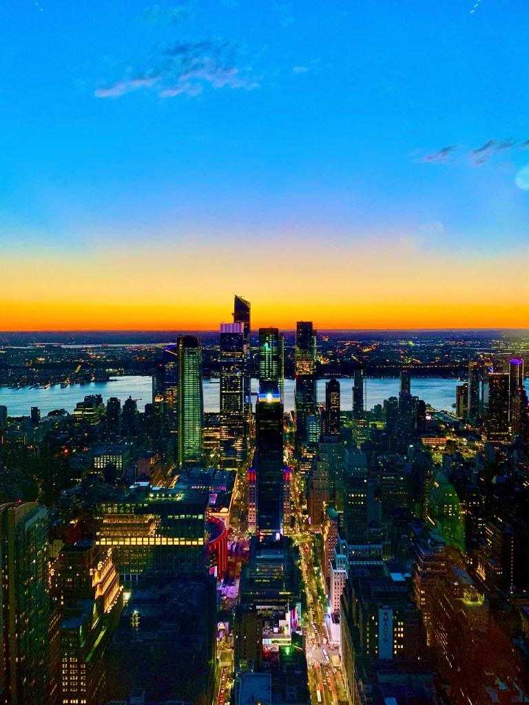 We wanted to witness the sunset from the Empire State building tower. You need to book your ticket in advance and choose a time-slot to go to the top of the tower. We were bit late as far time slot selection went and the sun was down the horizon when we reached the top of the building. We could capture the beautiful color of the sunset above the city’s skyline. As we were there for sometime, we could witness the night view of NYC from the top of the tower. The beauty of the city from above is going to last long in our memory indeed.