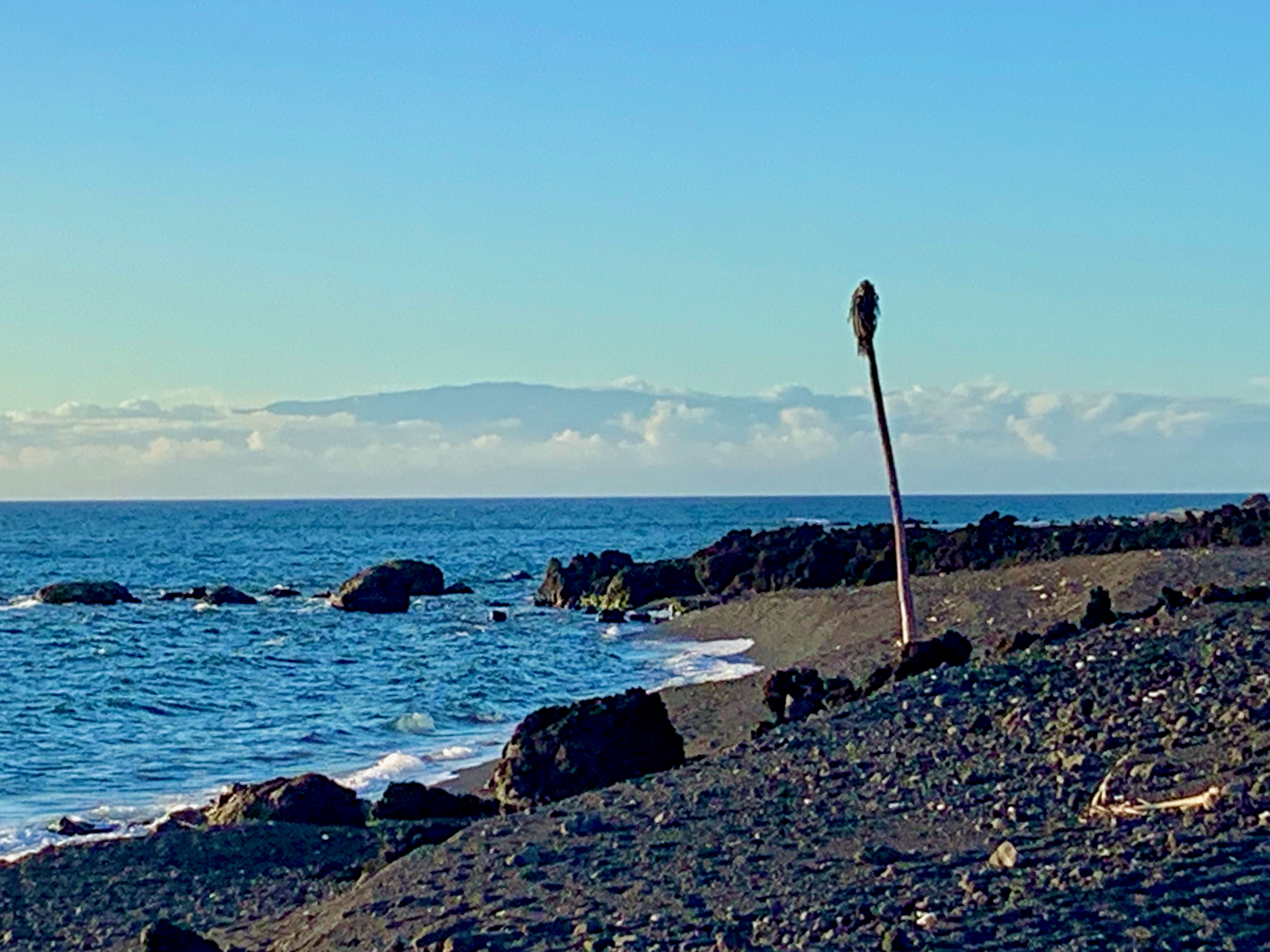 Fascinated by some of the posts in blogs, we decided to make a visit to Lone Palm tree. If go by google, it’ll show several locations and you may not be able to reach the right place. The one near Keawaiki Bay is what probably you’d like to visit. The place is North of Kona coast; Kailua-Kona and it takes about 30 minutes hike on lava boulders from parking. To set the expectation right, the palm tree is almost dead and it how it looks now as you see in the picture. The black sand beach and no crowds, however, makes it worth a try.