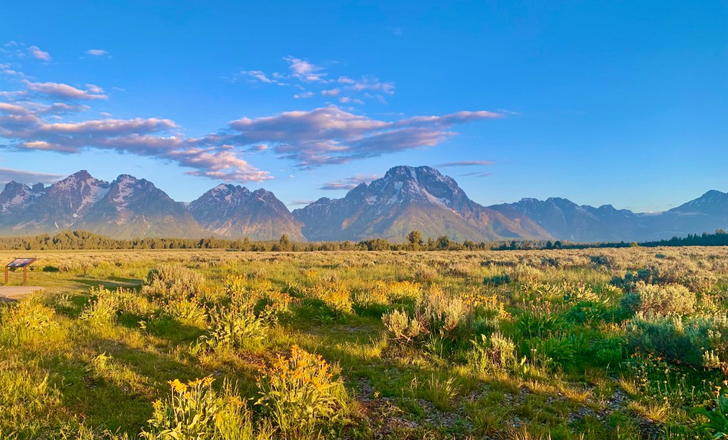 We started our day with a scenic drive along the Teton Park Road, stopping at various viewpoints to admire the breathtaking mountain landscapes and wildlife. Then we headed to the Jenny Lake Visitor Center and embark on a hike around Jenny Lake. We took the boat shuttle across the lake for easier access to the Cascade Canyon trailhead. We hiked the Cascade Canyon trail, a moderate to strenuous hike that offers stunning views of the Teton Range, alpine meadows, and the possibility of spotting wildlife such as moose and black bears. We enjoyed a relaxed evening at the Signal Mountain Lodge area. We grabbed dinner at the Lodge’s restaurant to savor the sunset views over the Teton Range.